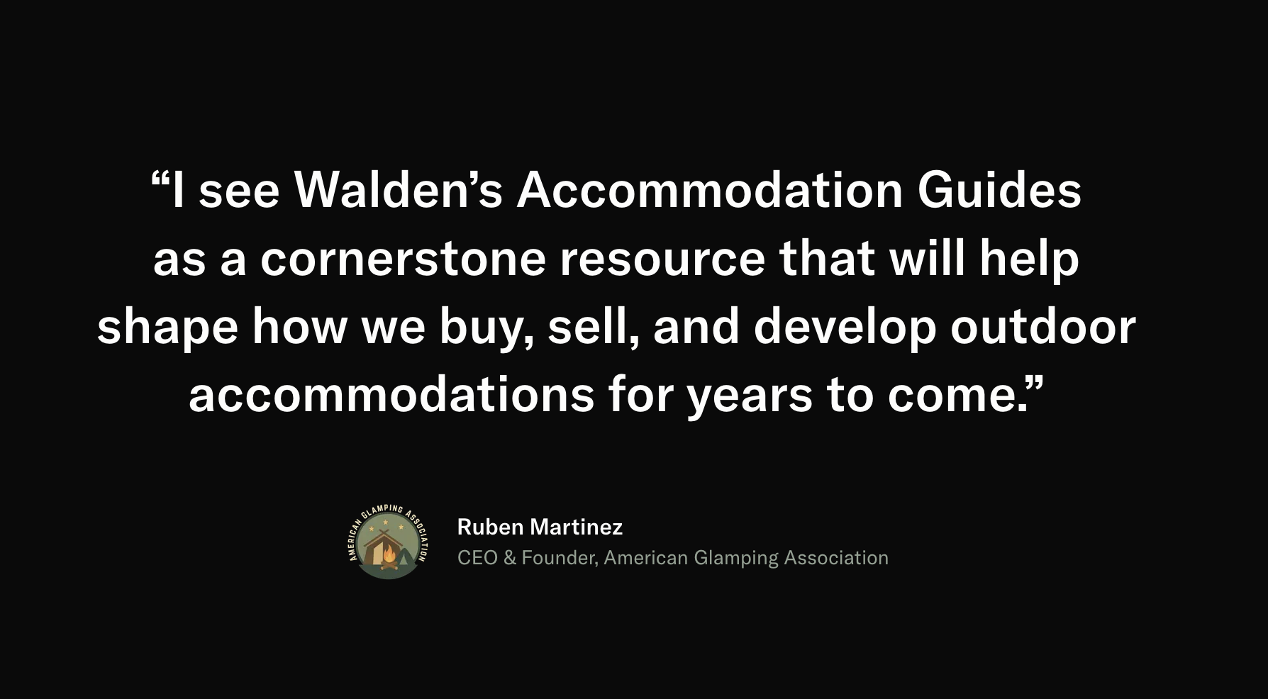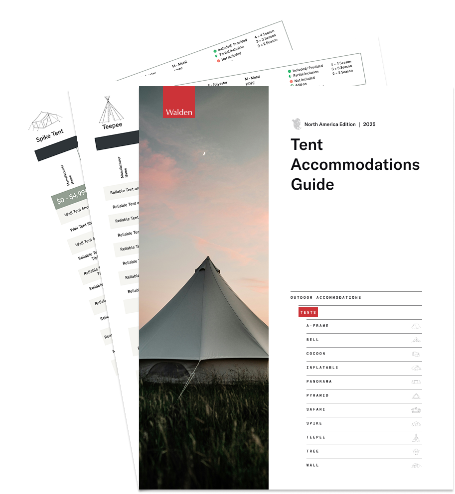 Get the full view of the outdoor accommodations market with Walden’s Guides. Designed for buyers, builders, and suppliers, they link products, demand, and expert insight in one place.